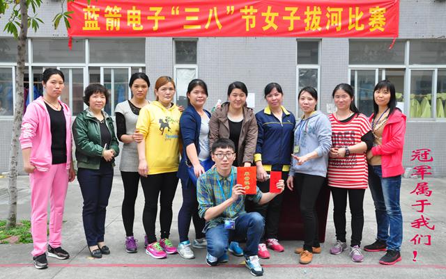 ????????為慶祝三八女神節,藍箭電子公司工會和團委一起組織舉辦了女子拔河比賽。比賽分為七支隊伍,分別為分別為一分廠隊、二分廠隊、三分廠隊、LED隊、質檢班隊、科室隊、后勤隊。比賽采用三局兩勝制進行。